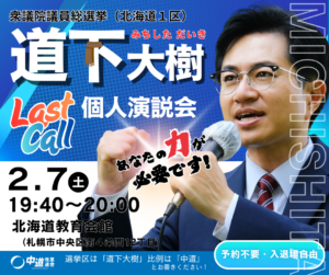 道下大樹 政治を変える!枝野候補&古賀参議の応援=個人演説会(2.1北海道教育会館)